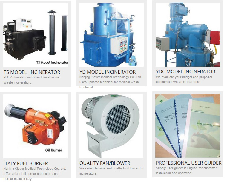 Medical waste is posing a growing problem all over the world, jeopardizing the health of staff, patients, disposal workers and anyone else coming into contact with the often hazardous materials discarded by hospitals and other healthcare sites. Hospital waste varies from site to site and the biggest challenge is to dispose of this wide range of waste streams. Incineration is still the preferred way to process medical waste without endangering the heath patients, staff or anyone else coming into contact with them. Clinical waste is costing more and more to dispose of safely. Health Clinics and Health center can now handle their own waste streams using one of our specialist medical incinerators. Destroying hazardous waste at source is by far the most effective and efficient way of handling waste that could potentially spread diseases or viruses. Average 20%-25% of the total waste generated by healthcare establishments is regarded as hazardous and may create a variety of health and environmental risks if not managed and destroyed in an appropriate manner. With years worth of experience in this sector, our medical range of incinerators are designed to cater for the economical needs of small clinics to the more demanding and specialized requirements of large hospitals in their waste management processes.HICLOVER is now offering a full range of medical waste incinerators, designed to provide efficient waste destruction, utilizing best available technologies and environmentally friendly process. Due to the secondary chamber with its 2 second retention period, our medical incinerator range is well suited to process medical waste. Our products ensure efficient, clean and hassle-free disposal of medical waste is possible. The incineration of clinical waste including pathological waste (red bag waste), Biohazards & Sharps, General Medical Waste, from Hospitals, Research Center, Pharmaceutical Companies , Drug Manufactures, Primary Care Trusts, Cosmetic Surgery Clinics, Nursing Homes, Care Homes and other Clinical Waste. ○Middle-Small Capacity(TS Model)※Main Features:— Double Combustion Chamber— Double Italy Burner–Burning Rate: 10-100kgs per hour–Combustion Chamber: 0.1M3-1.2M3※Optional Function/Parts/Material/Burning Rate: — Stainless Steel Chimney — Dry Smoke Filter Chamber— Chimney Height Custom Made— Upgrade/Downgrade Burning Rate ○Large-Middle Capacity(YD Model)※Main Feature:–Three Combustion Chambers— Double Italy Burner–Burning Rate: 30-600kgs per hour–Combustion Chamber: 0.36M3-5.5M3※Optional Function/Parts/Material/Burning Rate: — Stainless Steel Chimney — Dry Smoke Filter Chamber— Chimney Height Custom Made— Semi-Automatic Waste Feeding— 3-Section Wet Scrubber System— Movable Platform Feeding Door— Additional Burner— Upgrade/Downgrade Burning Rate ● Service before and after Installation — Factory training for installation, operational and maintenance with free cost.— Online service support for installation, operational and maintenance with free cost.— Onsite installation, operational and maintenance training— Onsite service support after installation ● Spare parts supportHICLOVER now offers spare parts including:— Burners (diesel oil, LPG or natural gas)— Element for burners— Fire ropes— Incinerator chamber maintenance materials— Air Fan — Temperature element— Smoke filter brick— Control box— Other parts Nanjing Clover Medical Technology Co.,Ltd. Tel: +86-25-8461 0201 Fax: +86-25-8461 0406 Website: oeoes.com/waste Email:[email protected]: [email protected]