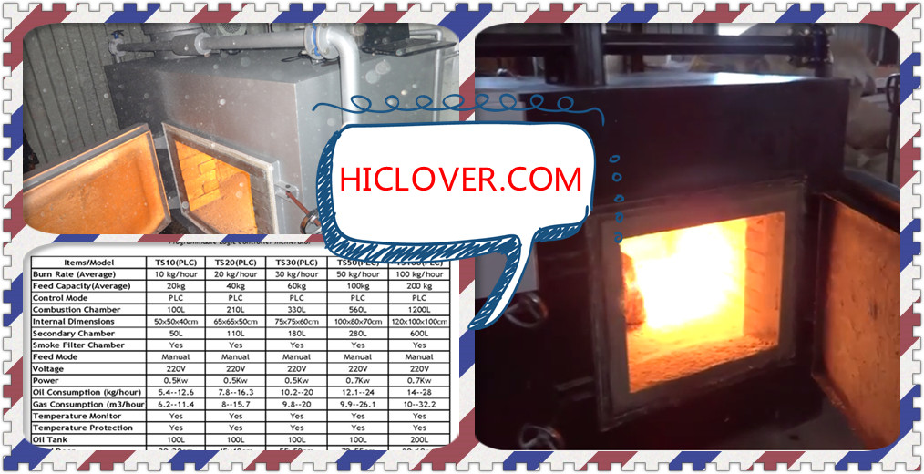 — Full range incinerator with Economized Small Scale incinerator, Standard Small-Large Scale incinerator, General Municipal Solid Waste Incinerator, Pet and Animal Cremation, Containerized Mobile Incinerator, High Efficient Environmental Waste Incinerator. — Single combustion chamber, double combustion chambers, three combustion chambers and multi-combustion chambers waste incinerators. — System solutions for medical waste environmental. — High burn rate, from 5kgs to 1000kgs per hour.— New Design for pet animal cremation business. — HICLOVER, trusted partner with years of experience. Items/Model TS10(PLC) TS20(PLC) TS30(PLC) TS50(PLC) TS100(PLC) Burn Rate (Average) 10 kg/hour 20 kg/hour 30 kg/hour 50 kg/hour 100 kg/hour Feed Capacity(Average) 20kg 40kg 60kg 100kg 200 kg Control Mode PLC PLC PLC PLC PLC Combustion Chamber 100L 210L 330L 560L 1200L Internal Dimensions 50x50x40cm 65x65x50cm 75x75x60cm 100x80x70cm 120x100x100cm Secondary Chamber […]