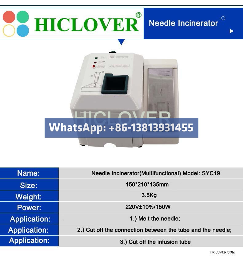 Needle Incinerator(Needle & Syringe Destroyers) and Micro Incinerator for COVID 19 waste. HICLOVER Solution for Fighting COVID-19, Medical Waste Incinerator Tel: +86-25-8461 0201 Mobile: +86-13813931455(whatsapp/wechat)Website: http://oeoes.com/waste/ Email: [email protected]Email: [email protected] Nanjing Clover Medical Technology Co.,Ltd.